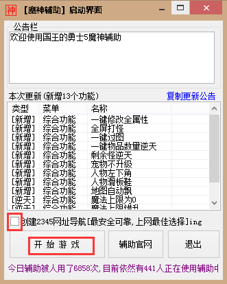 国王的勇士5魔神辅助将修改功能划分为综合修改、逆天修改、逆天装备、复制存档以及装备替换五个板块,当然还少不了辅助管理功能。