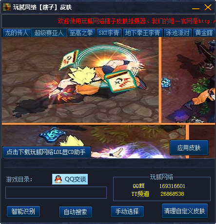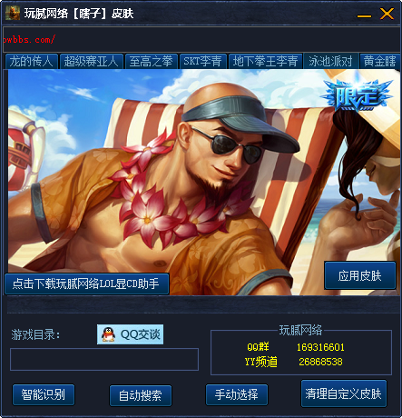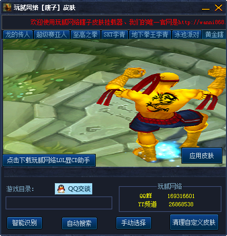 玩腻网络瞎子皮肤挂载器是专为英雄联盟游戏中的盲僧·李青制作的皮肤修改器,其中包含了七款皮肤,玩家可以任意免费修改。