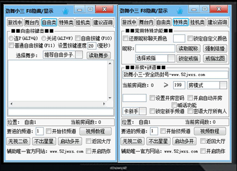 劲舞小三是劲舞团游戏的辅助工具,提供连B、连C、连G 连I、连P,自动准备、防止炸房、卡聊天颜色等功能,登陆游戏后会自动呼出辅助界面。