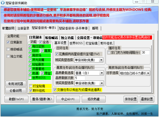 腾牛网提供的这款楚留香新传辅助,提供了日常副本、练级喊话以及独立功能,支持一键挂机坐等升级即可,非常适合刷小号。