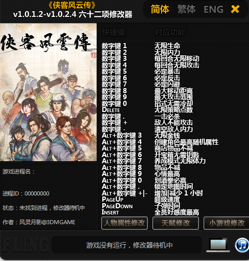 强大的侠客风云传六十二项修改器为你提供最全名的修改服务,让你体验到最详细的修改真正让你轻轻松松的进行玩耍。