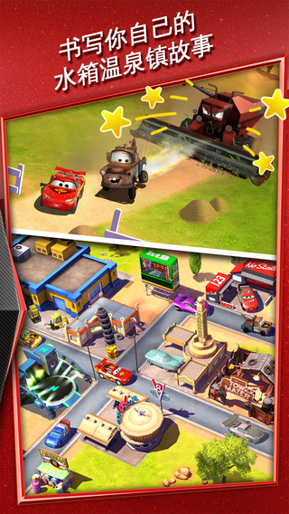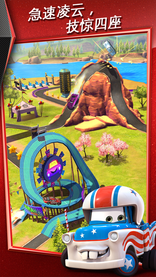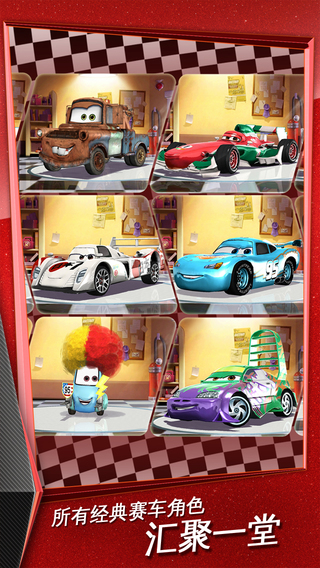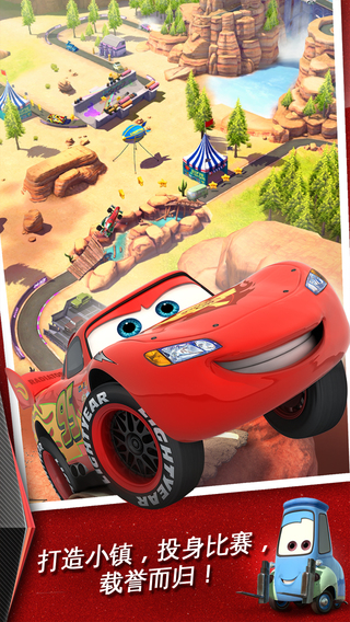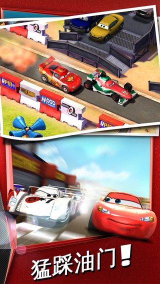 精美的3D画面,重现了《赛车总动员》电影中的角色、建筑和地标,加入了可爱有趣的动画效果!