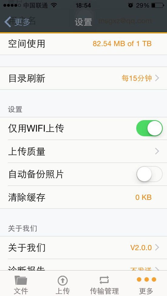 进入ios版私密云网盘盘后,选择“设置”进入设置界面,点击“清除缓存”即可。