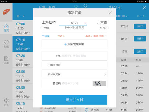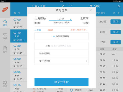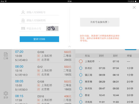 准确翔实火车票时刻、车次、余票一站式查询预订;