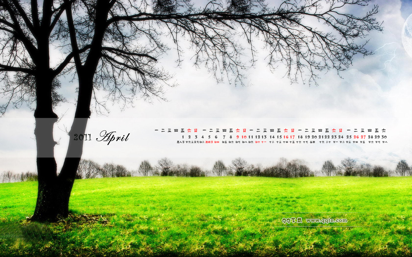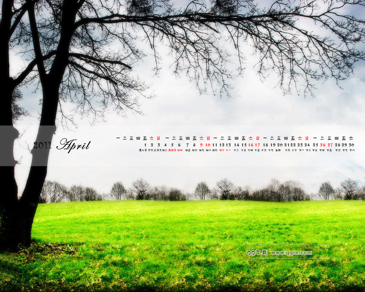 2011年4月日历壁纸 绿色风格,提供8种分辨率的桌面壁纸图片