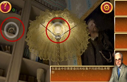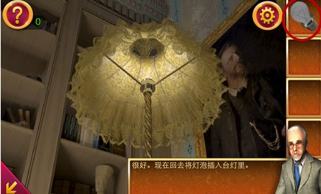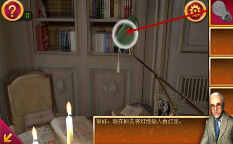 1.本关一开始,先注意到房间里的落地灯,点击它的灯罩。