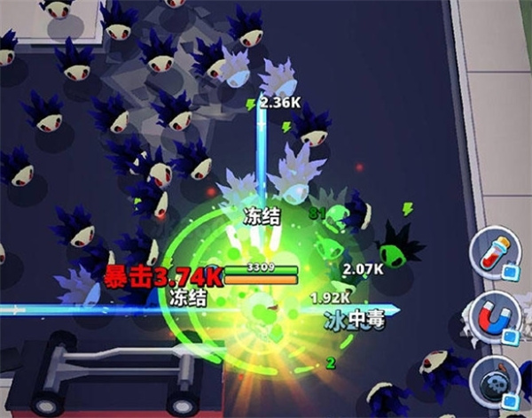 2、接着击败怪物后会掉落绿色闪电,拾取后可以获得更多的经验值来升级;