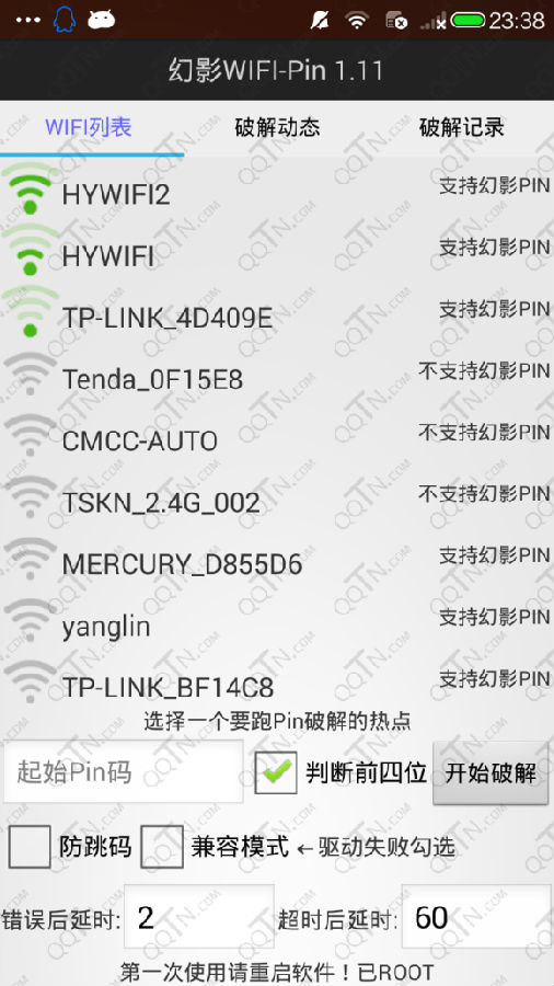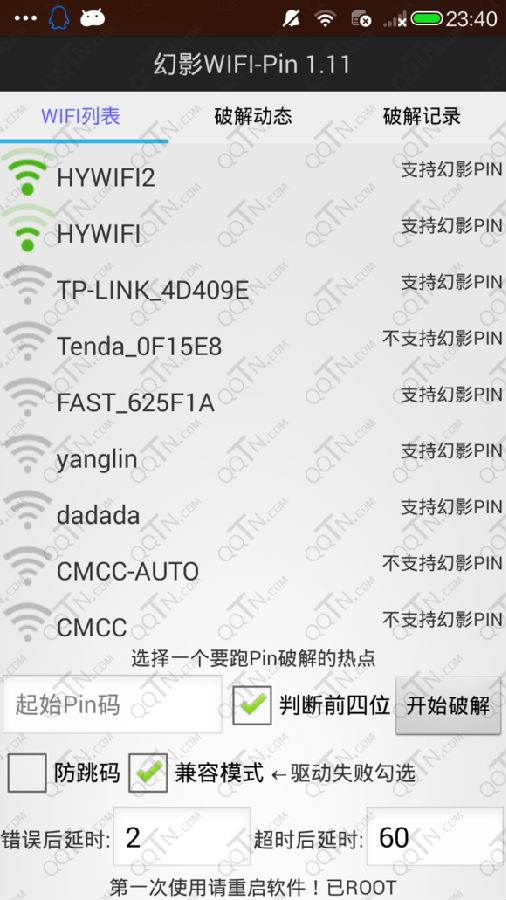 而幻影WIFI-Pin使用幻影开发的核心,仅需要一部已ROOT的手机,轻轻松松跑Pin破解WIFI,