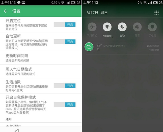 设置选项中,我们可以设置自动更新的时间和频率等基本信息。另外,小沃天气还提供了通知中心 widget 插件,开启之后无需打开应用就能快速在你通知中心查看天气,相当方便。小沃天气采用的是 Material Design 风的极简界面,让它看起来非常精致清新,当然主要功能上也丝毫不逊色,相信追求极简风的你也会喜欢这款天气预报 ~