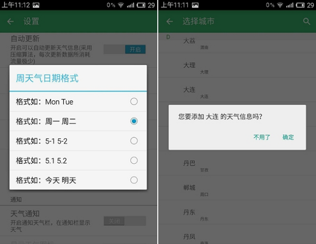 5、添加天气城市不限制,覆盖国内全部市县,包括港澳台大部分区域