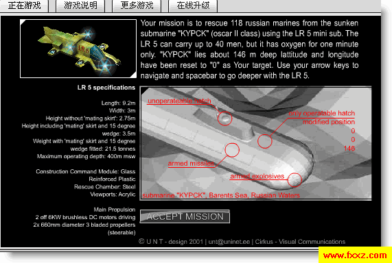 游戏操作说明: 潜艇救援行动 方向键控制方向.空格键下降高度