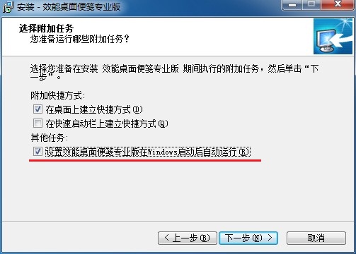 1.为了给您带来更高效更快捷的服务,在安装便笺时,请选择“设置效能桌面便笺专业版在windows启动后自动运行”。