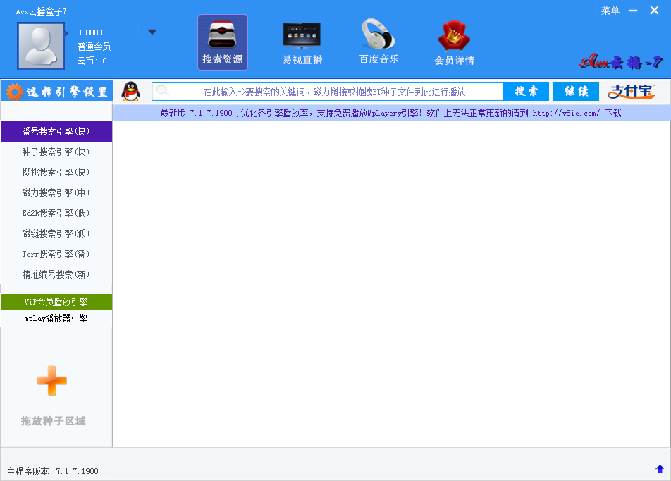 Avx云播盒子(AvxYunPlayer)集成目前网上最流行的云点播引擎加ed2k、magnet资源搜索引擎!五大搜索引擎两大云点播引擎,实现真正的随拖随放。
