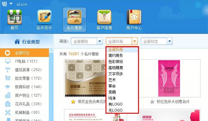 图图名片模板,按照模板风格分为简约商务、高档尊贵等多种风格,选择风格,可快速找到符合需求的模板。