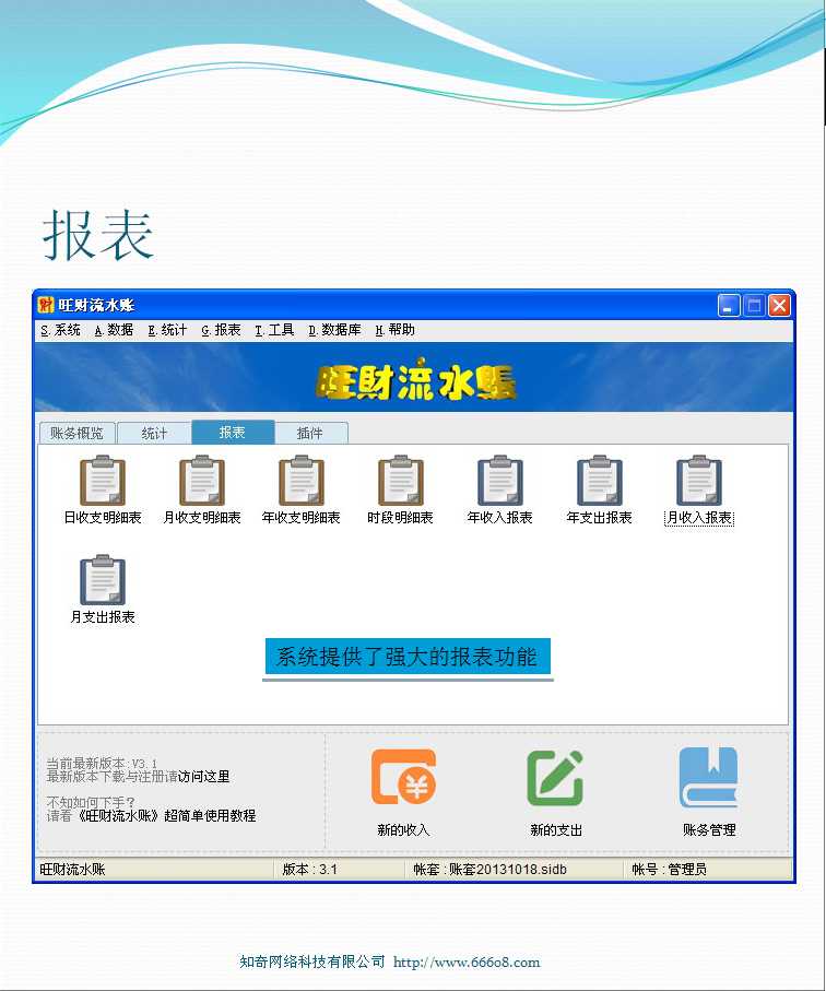旺财流水账可以帮助您建立多个账套,记录账单简便支持自定义分类和图形报表显示,让管理的你财政收入支出变得如此简单。