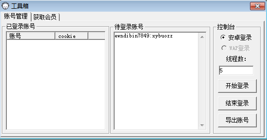 1、帐号管理,导入帐号,选择登录模式,点击开始登录。