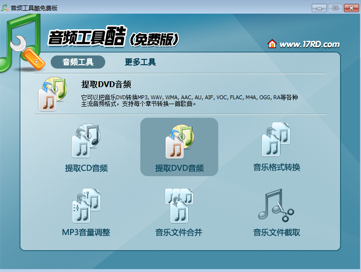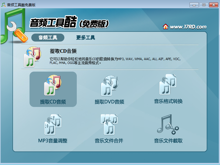 提取CD音频,它可以帮助你轻松地将音乐CD的歌曲转换为MP3、wav、aac、au、voc等主流音频格式