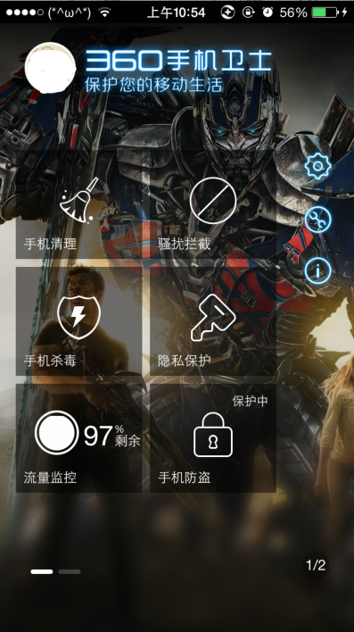 360手机卫士变形金刚4特别版苹果越狱版来啦,苹果用户的福利来啦,360手机卫士变形金刚4特别版支持最新的IOS7.1.1、7.1.2版系统,拥有变性金刚专享风格!现在变形金刚4火了,360卫士为大家精心准备了360手机卫士变形金刚特别版,除此之外抢先体验还拥有赢取变形金刚4门票的机会哦!