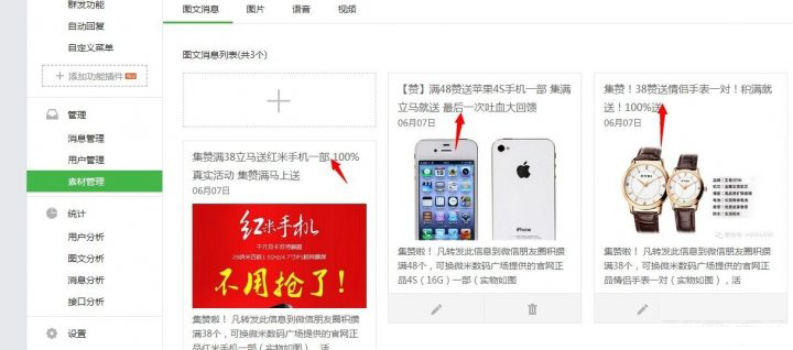 登录微信公众平台之后点击素材管理://mp.weixin.qq.com/