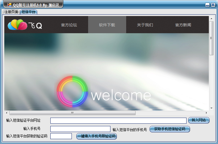 箫启灵QQ靓号注册机3.0版本震撼来袭,此版在1.0和2.0版本基础上添加了短信平台、自定义正则、绕过腾讯恶意注册限制以及手机QQ登录激活等多项全新功能。修复了部分的bug。