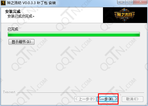 2.进行神之浩劫补丁包安装界面,点击下一步