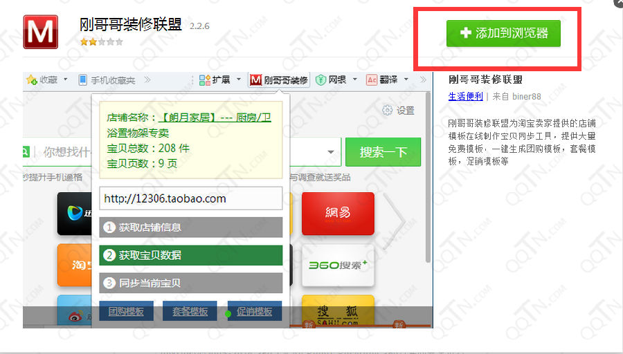 刚哥哥装修联盟插件专为淘宝卖家打造,是一款完全免费的淘宝店铺宝贝模板在线制作同步工具。并且提供海量的团购模板、套餐模板和促销模板免费使用。方便省事,快速制作同步,非常好用的一款淘宝卖家工具,直接集成在浏览器,推荐下载使用。