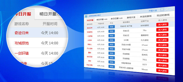 如果你喜欢玩网页游戏的话,那么网页游戏开服表对你来说可是一件好东西,它会显示所有即将开服或已开服的网页游戏的开服时间,帮助你第一时间玩新服,其次不同的页游开服表会针对游戏设定相应的游戏礼包,这也是不小