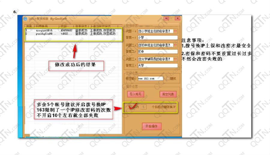 3、多于5个账号建议开启拨号换IP,163限制了一个IP修改密码的次数,不开启换IP,10个左右就全部失效