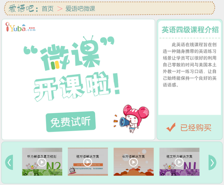 爱语吧英语四级听力软件将历年英语四级真题一网打尽,为你提供全面免费系统学习资源;大家可以使用软件练习四级听力、在线查看真题,并且为大家提供科学的学习复习方法,让你可以轻松搞定英语四级。