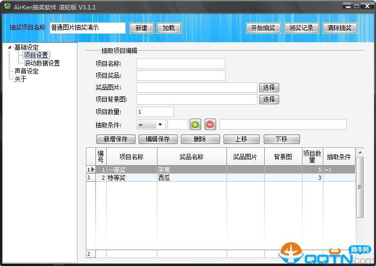 8、奖项抽取顺序是从上到下,如果需要调整抽奖顺序通过“上移”,“下移”按钮进行调整。