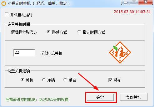 小福定时关机软件是一款绿色小巧的桌面定时关机软件,它可以帮助你自动关机,这款关机软件操作简单,你只需要提前设置好关机时间、关机选项,如关机、注销、重启等操作,递减模式和指定时间关机,它就能在指定的时间为你自动完成关机操作了,欢迎需要的朋友下载使用。