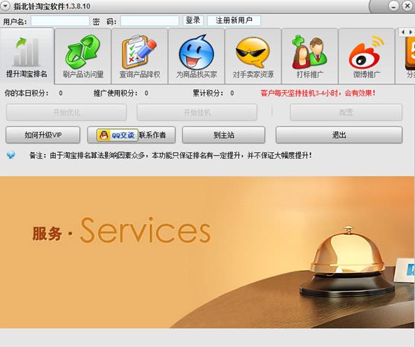 指北针淘宝软件是一款专业的淘宝优化推广软件,这款软件绿色免安装,功能非常强大,它可以帮助淘宝卖家进行淘宝优化、挖掘客户、价位分析、微博推广、分类推广等等功能,能够提高你的淘宝店排名,增加淘宝访问量等等,为你实现高效的淘宝推广,欢迎各位朋友下载使用!