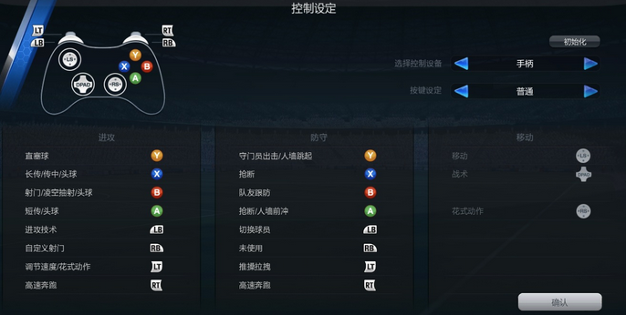 (1)手柄设定——普通(单机FIFA中的“经典”设置)