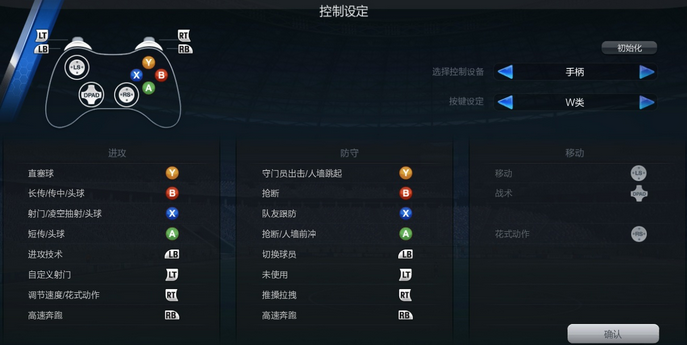 (2)手柄设定——W类(单机FIFA中的“备选”设置)
