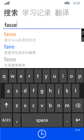Windows Phone手机也能使用法语助手啦,支持wp7.5/8/8.1系统,拥有完整的法汉(汉法)词典,拥有法语搜索、翻译以及学习记录等功能。