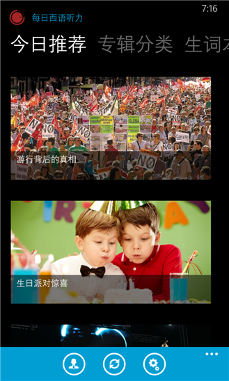 每日西语听力wp版每日推荐精品西语听力,还能自选节目,并提供独家提供智能语音高亮跟随功能,还能配合西语助手适用。