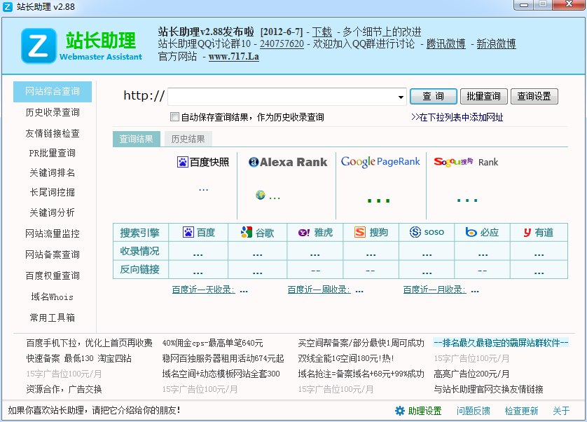 体积小巧, 集成了大量常用站长工具, 包括网站收录查询, 友情链接检查, PR查询...