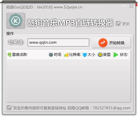 • 酷狗音乐MP3直链转换器1.0 绿色版_生成mp3链接地址