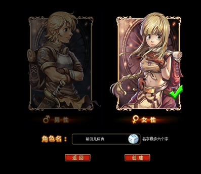 选择初心者性别,输入自己想要的名字,点击“创建”即可