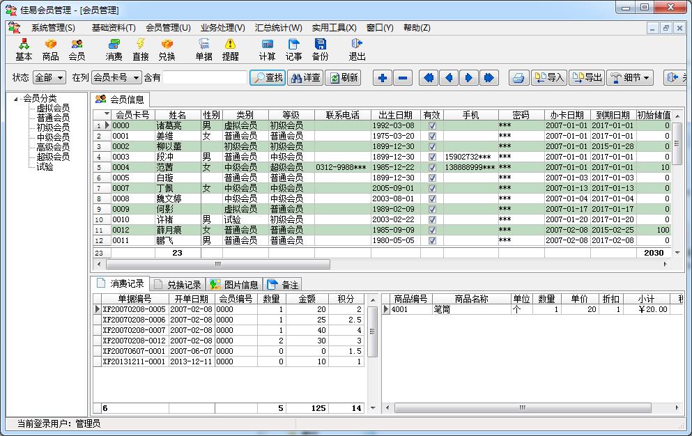 佳易会员管理系统是一款强大的会员管理软件,这款软件可以帮助你进行会员基本资料管理、消费管理、积分和储值管理以及各种查询统计管理功能,这款软件操作简单,界面简洁,性能稳定,可满足商业销售、餐饮、美容、医药、娱乐、桑拿等服务行业进行会员制管理、会员卡管理、会员积分管理、会员消费管理的需求,经济、高效、实用,能让你的会员管理工作轻松自如。