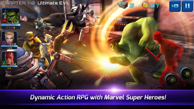 《MARVEL Future Fight 漫威未来之战》是一款动作角色扮演游戏,故事发生在一个濒临破碎的世界。游戏中玩家将收到一条来自神盾局的老大尼克·弗瑞(Nick Fury)从未来发来的恐怖信息,称由于多维度碰撞,使得世界被撕裂,玩家需要召集英雄与恶人,组成强大的小队完成一系列任务,找到隐藏在幕后的敌人。