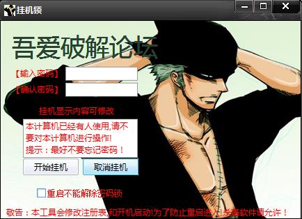 当前位置:线上电竞星空系统工具桌面工具 → 挂机锁 1.0 吾爱破解版
