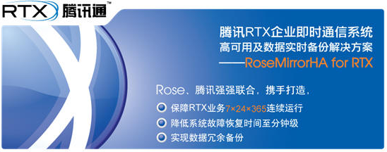 RoseHA for RTX,RoseMirrorHA for RTX是Rose公司推出的保障RTX系统业务连续运行的高可用插件。随着RTX用户业务的不断增长,RTX使用规模不断增加,使用率越来越高。为了保证RTX服务的连续性,减少由于RTX服务器硬件或者操作系统等造成的宕机、单份数据丢失问题,腾讯公司和国际知名的高可用解决方案厂商Rose公司联合推出两个针对性的解决方案。