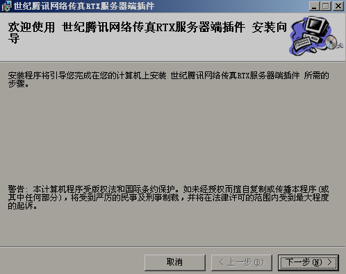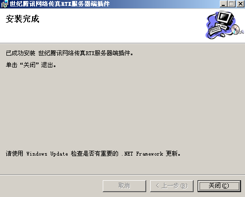 注意:安装程序会自动检查系统是否已安装.net framework 2.0和 RtxServerSDK,如未安装,会提示到指定站点下载。
