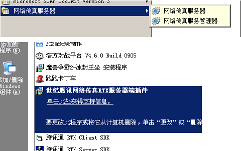 安装网络传真RTX服务器端插件后,服务器中会多出一项CenterFaxRTXServerPlugin的服务,并在开始、程序菜单中生成相关的管理程序组。在添加删除程序中,也会出现对应的软件。