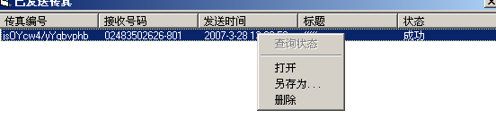 保存已发送成功的传真,可以选择具体记录进行打开、删除等操作。