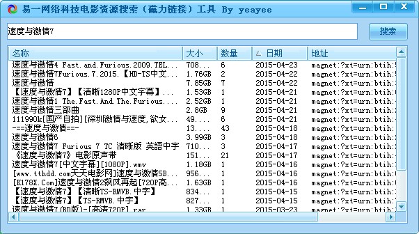 电影资源搜索工具是一款免费的电影资源搜索神器,使用该软件可以帮助你将百度云盘资源解析出来生成独立的下载链接,并可将下载链接复制到迅雷、QQ旋风等下载器中进行快速下载,有需要的朋友欢迎下载使用。