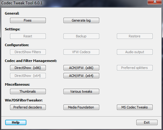 K-Lite Codec Tweak Tool 可以扫描到你系统中有问题的解码滤镜,然后一一清除它们。当解码器扫描修复工具扫描到错误或者已经受损的文件之后,会提示你操作,非常智能的一款软件。
