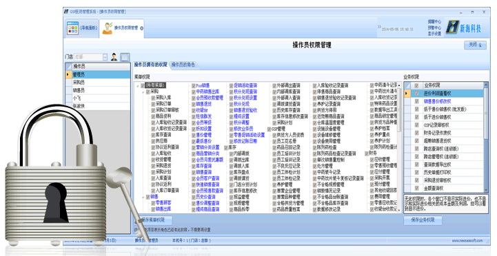 不仅可以满足员工在实际业务中的权限控制,而且更为科学、更为严谨功能权限与业务权限,使管理更全面化、立体化,杜绝漏洞。