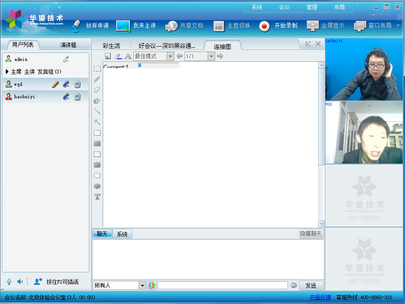 自有知识产权的数据共享核心技术,提供业界功能最全面、易用性最高的会议协作功能,可在远程会议中进行文档、图片、桌面、程序、网页、多媒体文件、电子白板等各类数据的实时共享和互动。